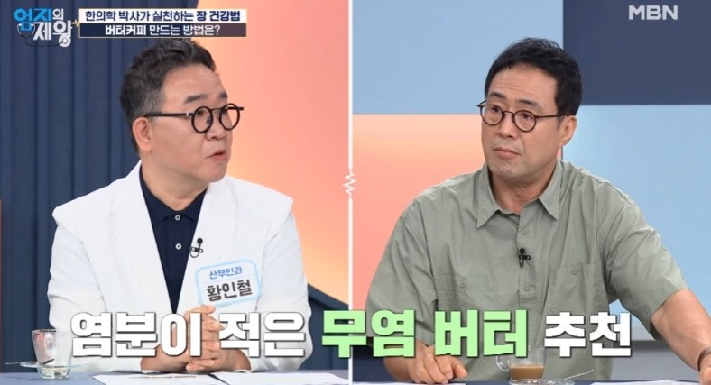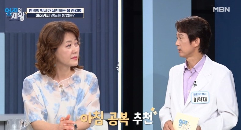 MBN **엄지의 제왕 656회(2025년 8월 26일 방송)**에서는 장 건강과 다이어트를 함께 잡는 방법으로 **버터커피(방탄커피)**가 소개되었습니다.